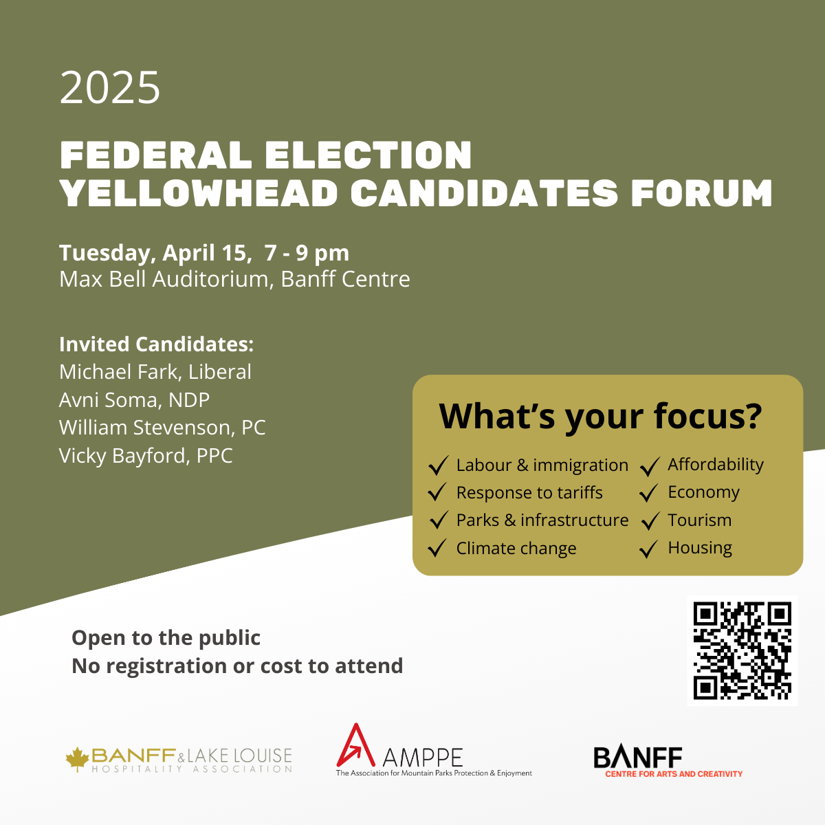 Banff All-Candidates Forum Federal Election Yellowhead Candidates Forum. Tuesday April 15, 7-9pm. + Add to Google Calendar + iCal / Outlook export Date Apr 15 2025 Expired! Time 7:00 pm - 9:00 pm Category AMPPE Events Share this event