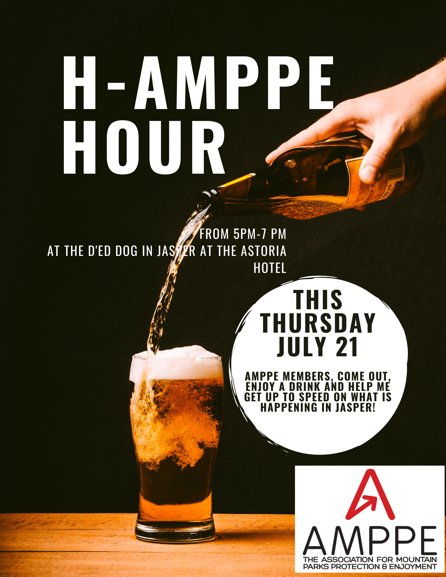 Join us for drinks after work at the D’ed Dog in Jasper July 21. AMPPE is hosting an informal event consisting of eating some snacks, drinking some drinks and casually catching up on the latest happenings around the Mountain Parks.